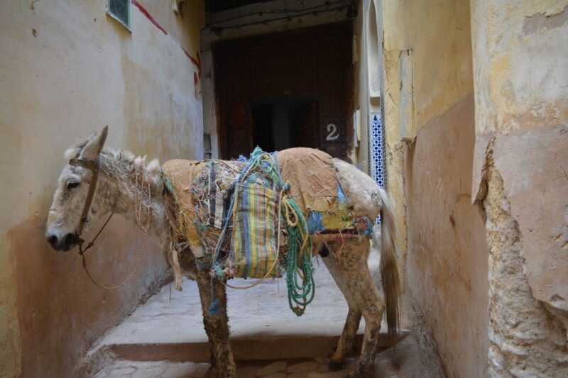 There are no cars or motorbikes in the medina so all the food has to be moved around by cart or mule. Make sure you keep your eyes open because the mules don’t stop for anybody once they get going. There are over 9500 streets in the medina and some are so narrow that two people cannot pass at the same time.