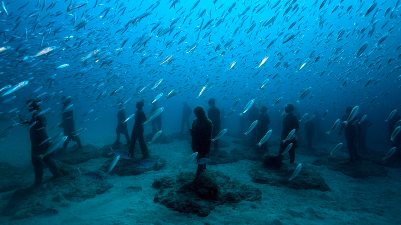 This is the Museo Atlántico, an underwater museum of 300 statues, that the artist, photographer, diver and environmentalist, Jason deCaires Taylor, has spent over a year creating off the Canary Islands.