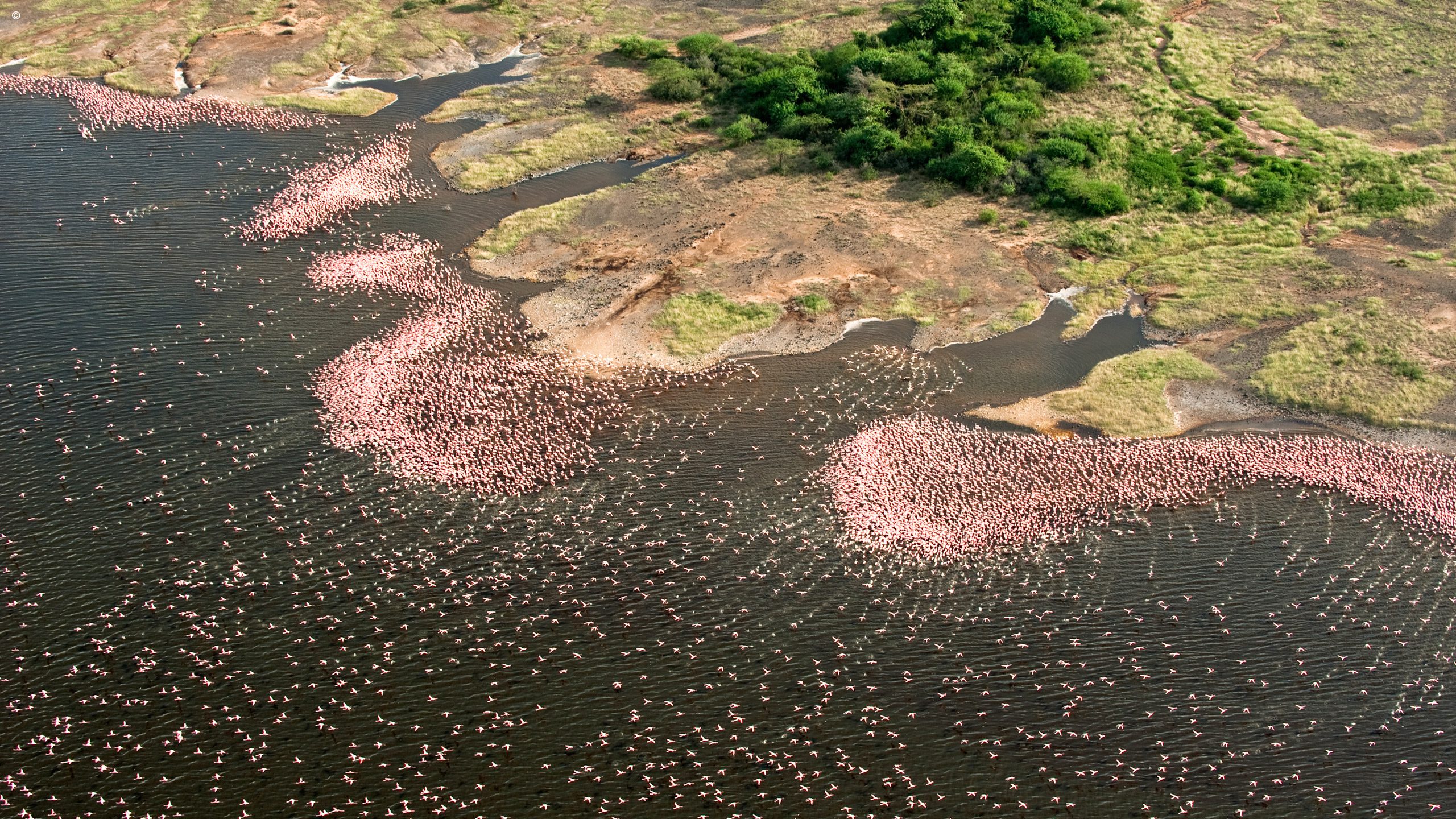 The Great Rift Valley is 3,700 miles long (around 6,000 kilometres) and runs from Syria right the way down to Mozambique. Nestled into the valley, the Kenyan lake system is a UNESCO World Heritage Site, protected for its diverse wildlife, beauty and endangered species. The lakes are the world’s most important foraging ground for the lesser flamingo and a crucial nesting and breeding site for the great white pelicans.