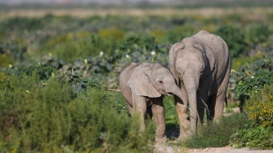 After a series of short domestic flights, Bob and Jacqueline arrived to Hoanib Skeleton Coast Wilderness Camp. Placed in the broad valley of the Kaokoveld Desert, the camp offers an unforgettable getaway, filled with desert-adapted wildlife. They explored Hoanib Riverbed and sighted wildlife including elephants, lions, zebras, giraffes and hyenas. The picture of two elephants affectionately fondling on the left is one of Jacqueline’s favourite shots: “Being able to witness tender moments in the silent wild is truly special.”