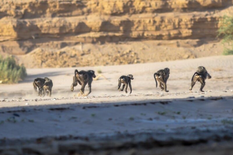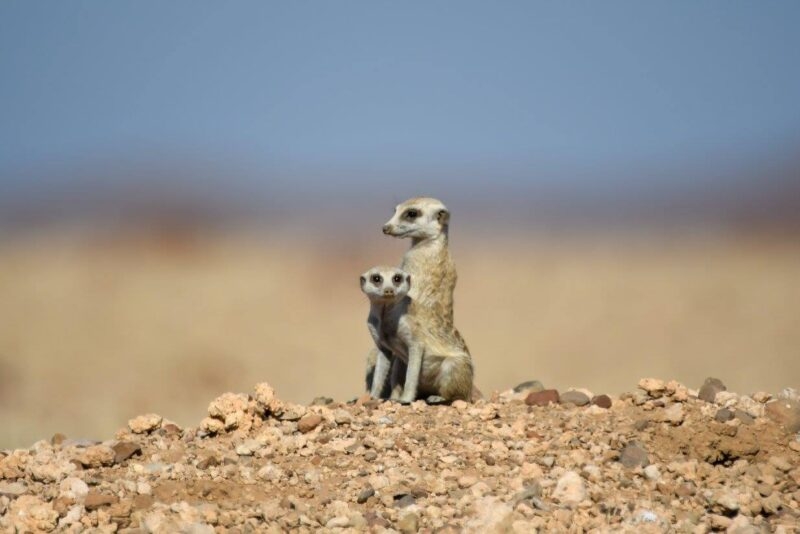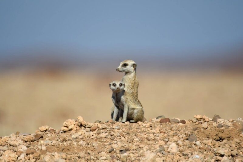 On their fourth day in Hoanib, Bob and Jacqueline couldn’t help but wonder if they were ever going to see any wildlife predators. As luck would have it, that same morning, they found a desert cheetah and her cub! Depicted in the photo on the left, this baby was throwing a tantrum, calling for his mother to follow him.”
