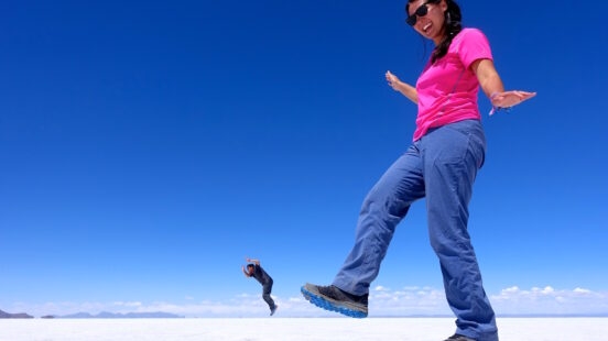 The couple was next bound for Bolivia to explore the country’s incredible and surreal natural salt flats: “We had so much fun getting creative in Uyuni! A clear reflection of our marriage. In Uyuni, everyone comes to experience the salt plains and its sunsets. But we decided to explore the quiet surroundings a little more and I guess we were lucky enough to witness a rare storm raining in the distance.”