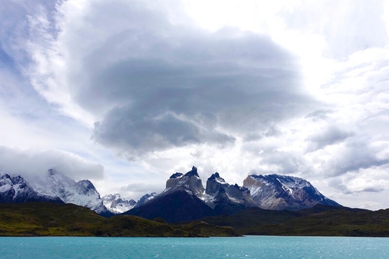 The W Trek in Patagonia provided plenty of memorable experiences too. “We had an unbelievable moment when the French Valley was singing to us for about 30 minutes… it was an orchestra of howling, singing, crackling of the ice, small landslides, quite a bit of movement in the valley. It was incredible how alive the valley was. It felt like it was putting on a show just for us”. After completing the amazing W Trek in Patagonia, sore and tired, we witnessed this stunning natural formation called a supercell as it was hovering above Torres del Paine for only a brief moment. It was an incredible experience to be able to see this on a boat on Lake Pehoe, as this supercell made Torres look very small indeed!”