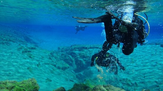If you’re an adventure seeker, don’t miss snorkelling in Silfra. The water in this lake is so clear that you can see over 100 metres down – that’s two to three times more than anywhere else in the world! You’re rewarded with endless shades of blue, multicoloured algae and fascinating rock formations. The water is so clear here that you feel like you’re flying over it! The water is chilly – around 2 – 3 degrees so you’re provided with a full wetsuit. Under this, make sure you wear think warm layers to keep the heat in. The suit makes you naturally float and the diving instructors here teach you how to flip around and rest if you need to. In my case, I used my resting moments to appreciate the bright blue skies and take in another shade of blue – an extraordinary experience.