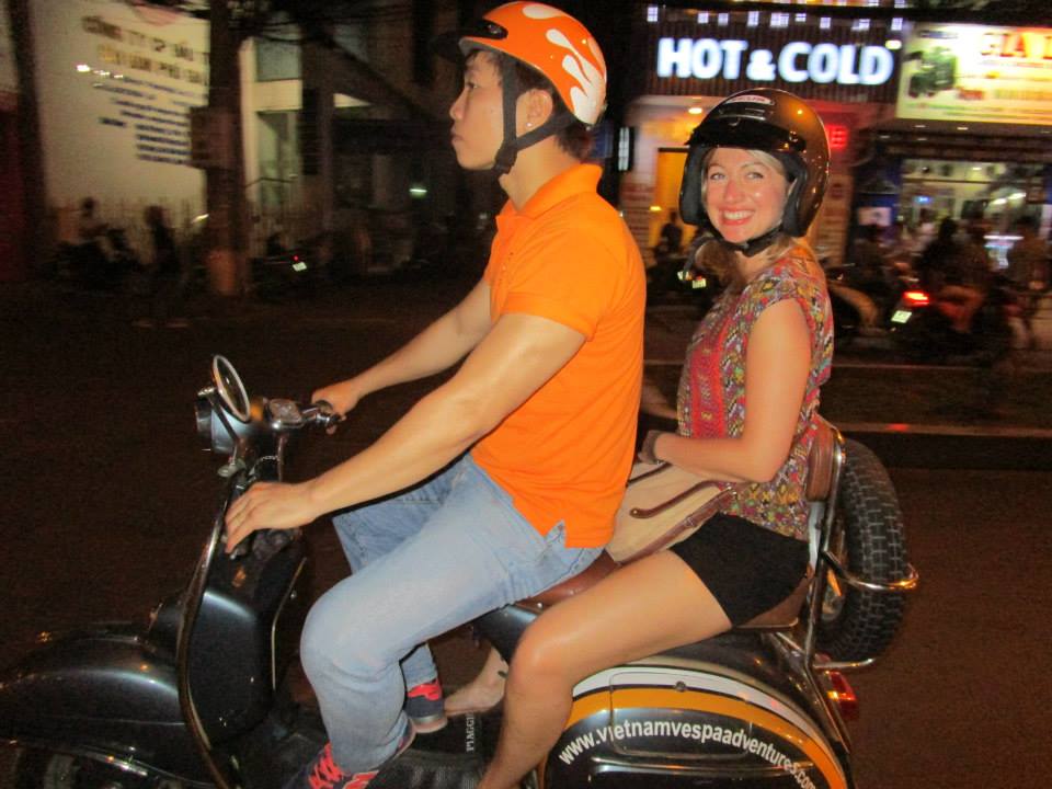 Our last stop on our Vespa tour is a speakeasy-style bar outside Saigon’s busy city centre. We enter via an empty courtyard, passing a barking dog yanking on his chain, and climb a flight of stairs, at the top of which we find ourselves in a little candle-lit lounge with a jazz singer entertaining a crowd of people sipping iced tea and cold beers. It’s discovering places like these that make great guided tours pay for themselves.