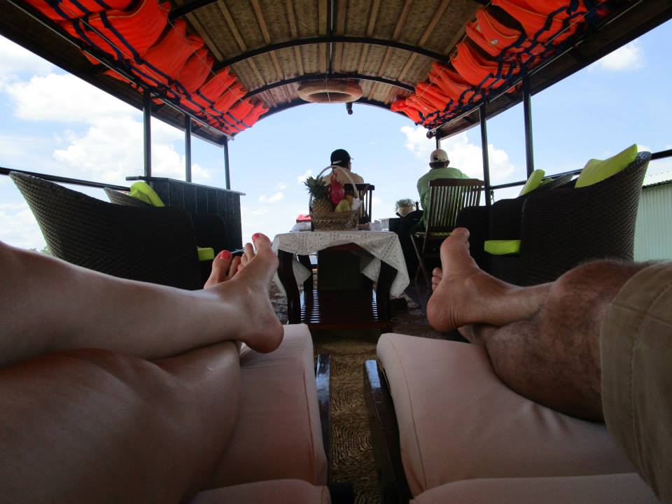 At 8am we leave Saigon and travel to our boat in the Mekong Delta. We are lucky enough to have the whole boat to ourselves.
