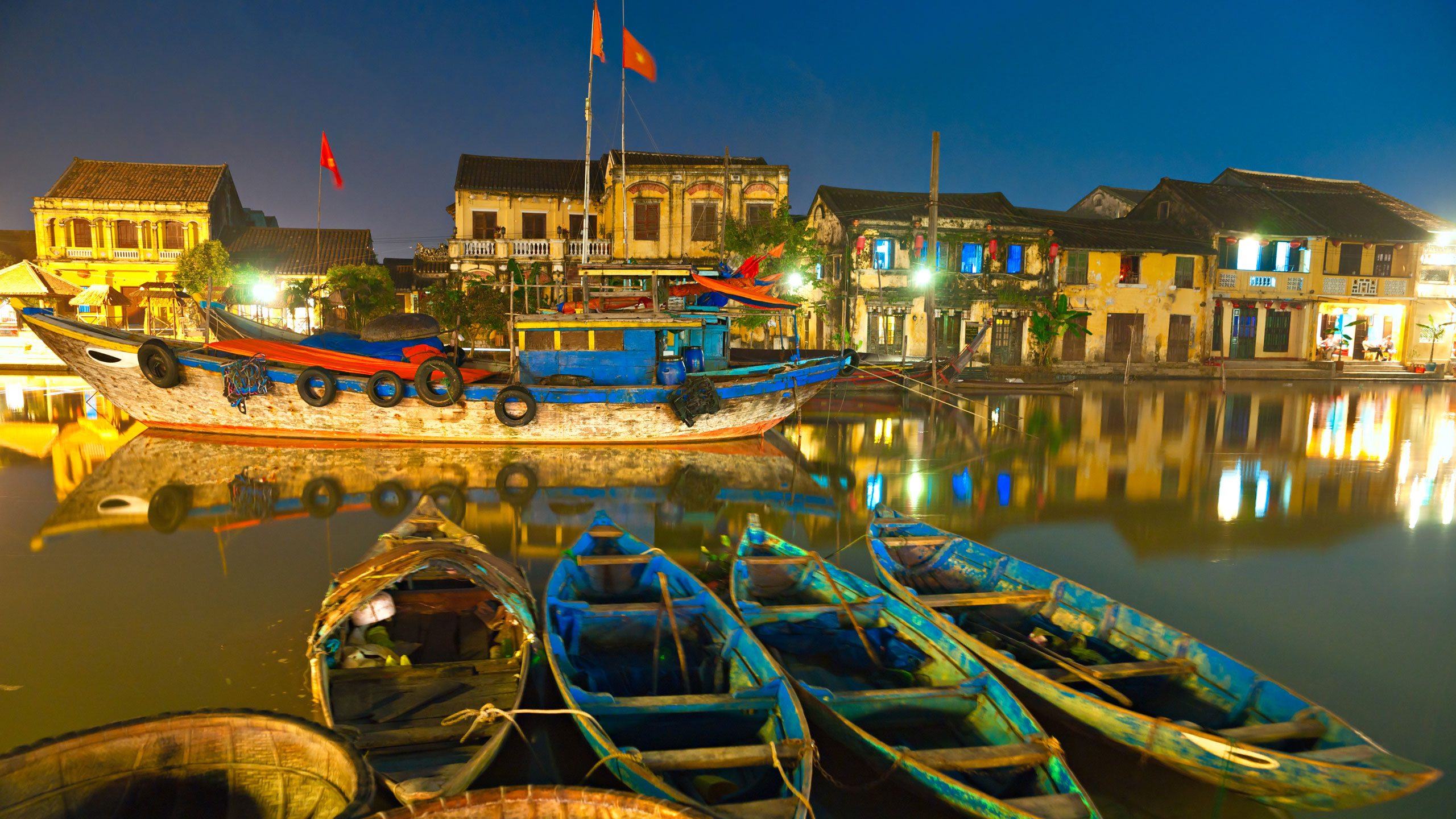 After a day in Hoi An, we board a local fishing boat for a sunset cruise on the Cua Dai Sea. As the sun slips below the horizon, we watch as fishermen prepare for an evening’s work.
