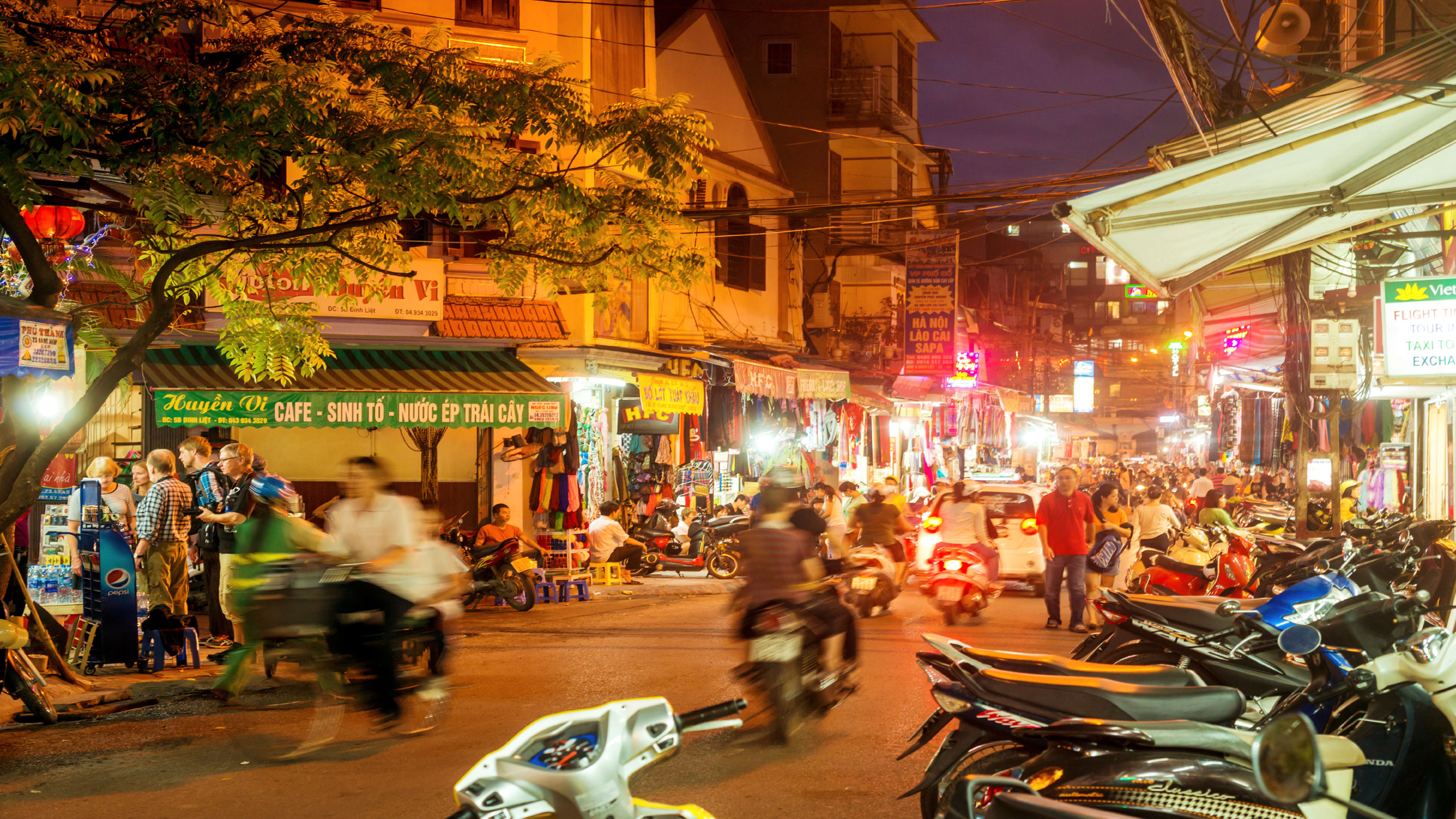 In the evening, we wandered through the Old Quarter when everyone sits out on the streets on brightly coloured plastic chairs eating and drinking. A beer costs 50 pence (90 cents), the food is delicious, and there’s such a fun atmosphere: the evening is a pretty amazing way to round off what has been an incredible trip.