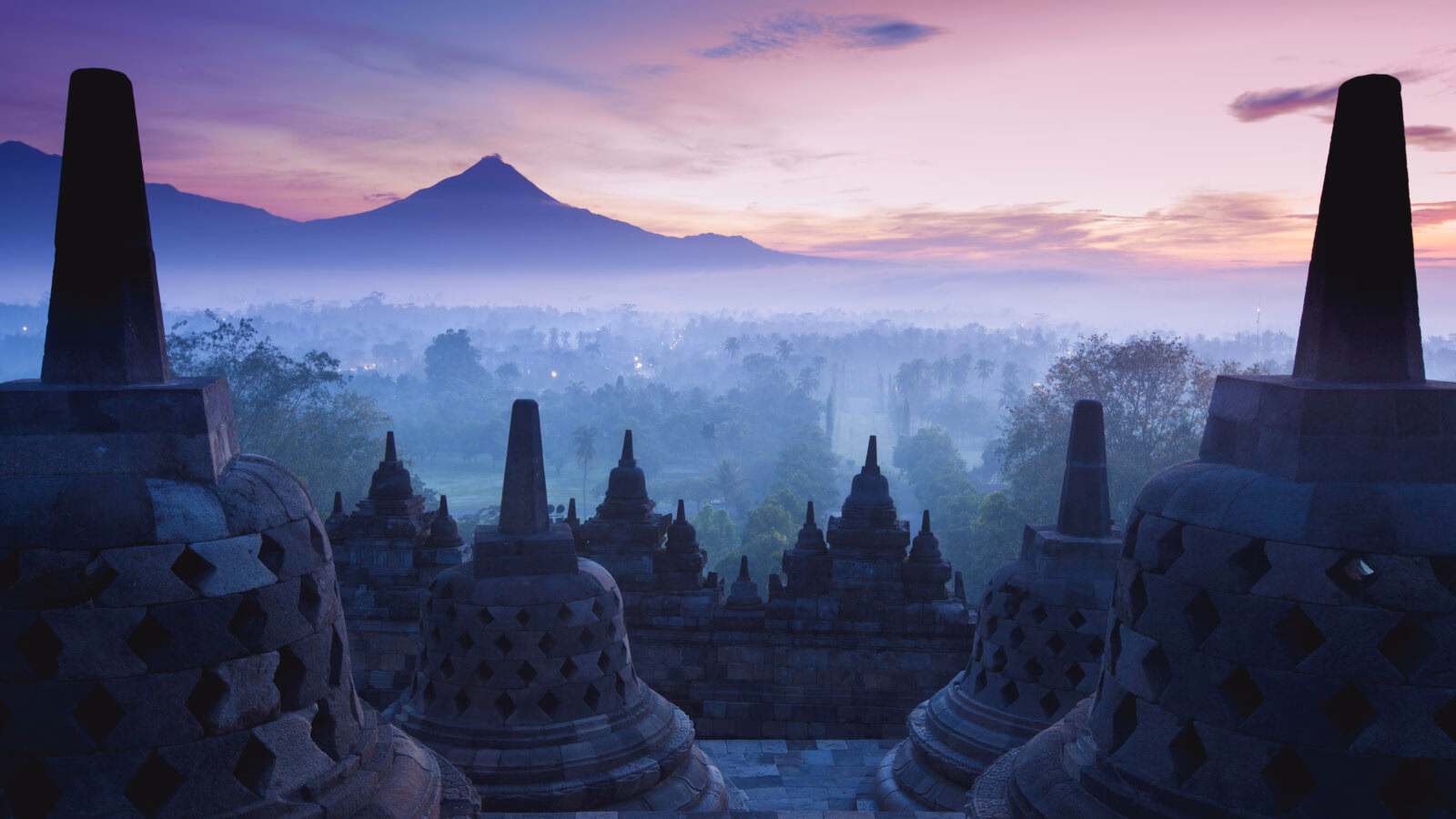 The setting of the ancient temple just adds to the allure. The steaming jungle and the shadowy peaks of central Java’s enormous volcanoes, including the active Mt Merapi, make for an incredible combination of culture, history and nature.