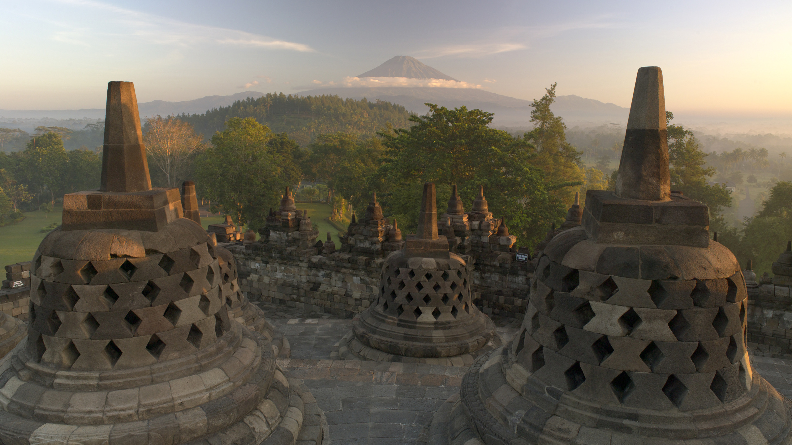 The setting of the ancient temple just adds to the allure. The steaming jungle and the shadowy peaks of central Java’s enormous volcanoes, including the active Mt Merapi, make for an incredible combination of culture, history and nature.