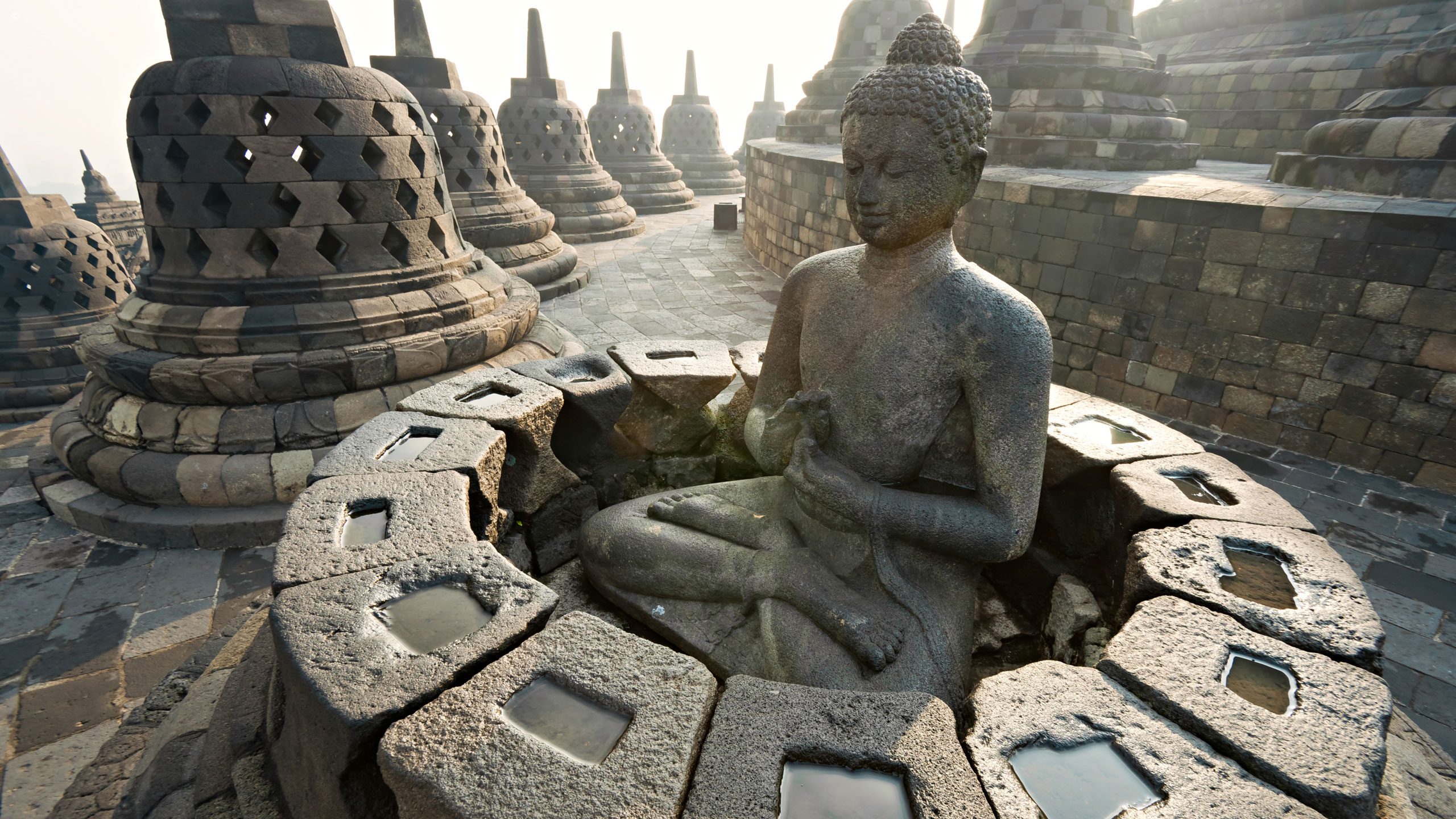 Borobudur was built between the 8th and 9th centuries (300 years prior to Cambodia’s Angkor Wat), abandoned between the 10th and 15th centuries, and rediscovered in the 19th century. It is the largest surviving Buddhist temple in the world, and it is still a pilgrimage site for Buddhists.