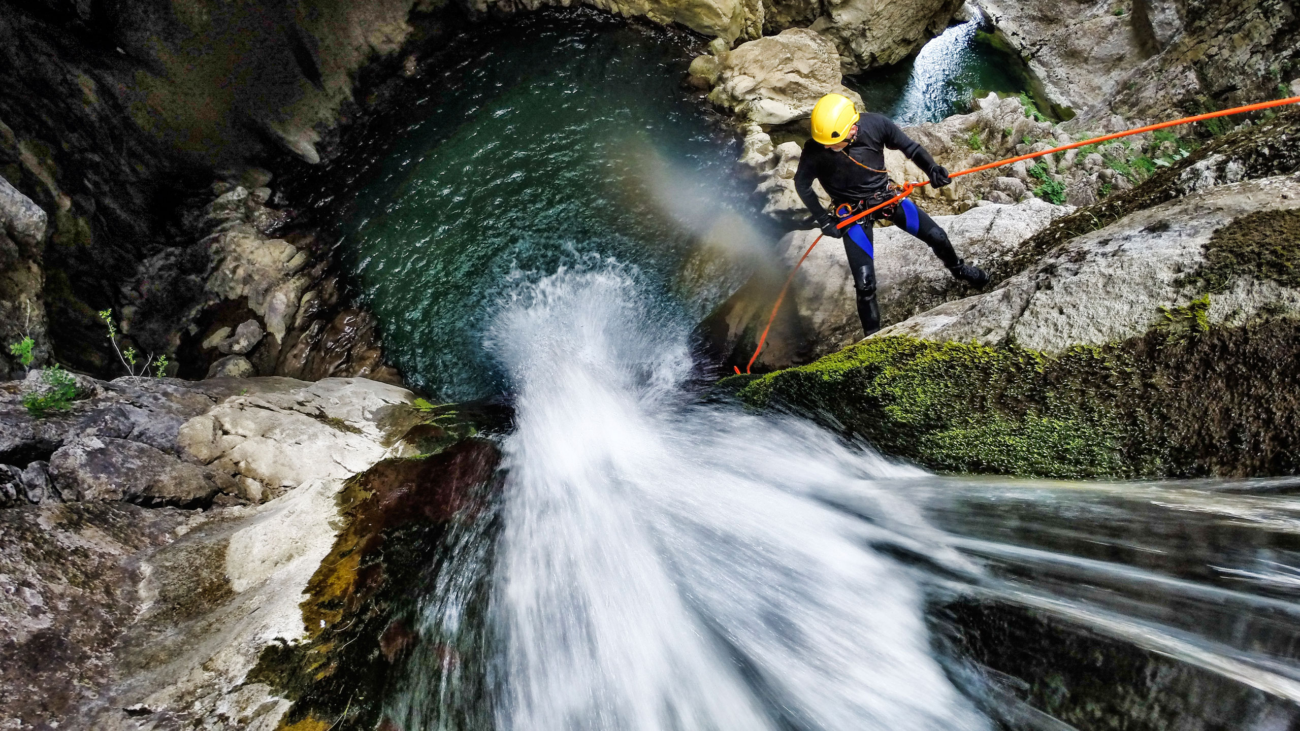 Canyoning involves clambering, scrambling and leaping your way down a river, abseiling and zip-lining where there are steep drops involves. Prepare to get wet.