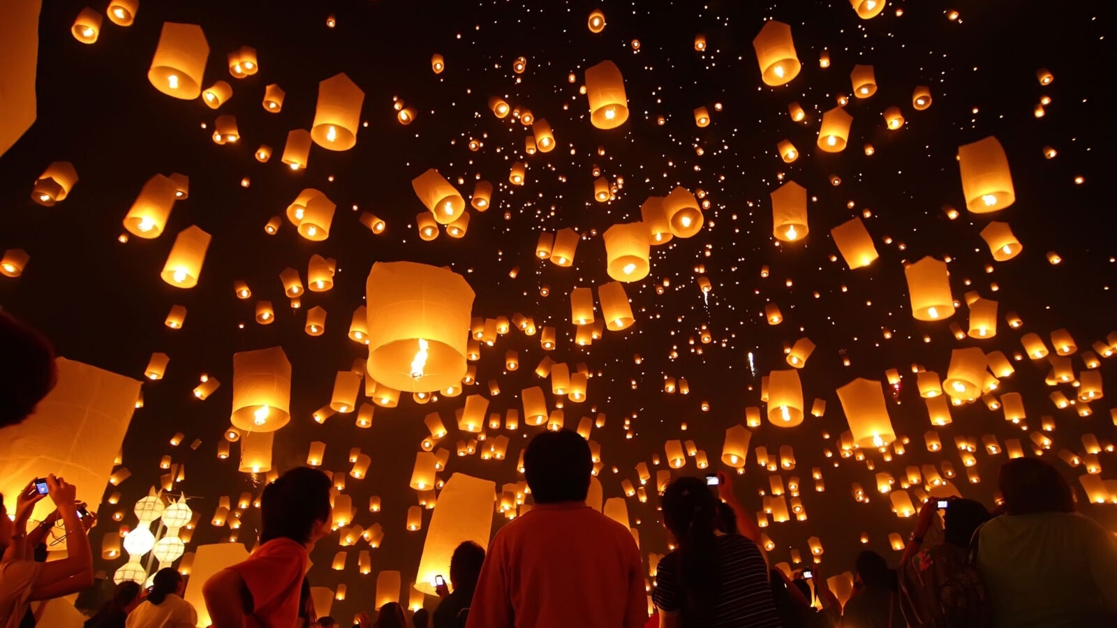 There are several days during the Yi Peng festival when these kinds of lanterns are launched into the night sky. In Chiang Mai, one mass lantern launch is organised by a group of monks shortly before the festival and can be accessed at no cost. A different lantern event for tourists can be booked at a price (around $100) after the festival. However, these mass lantern launches are not part of the official celebrations and for three days during the festival, people release lanterns from all kinds of locations.