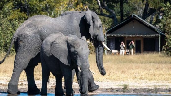Here you can sip your morning coffee as you watch elephants drink from the watering hole, then set out on a game drive to see giraffes, leopards, zebras, hyenas, wildebeests and more. Return to camp for a scenic sundowner and a lantern-lit dinner, or huddle around the fire pit to share stories of the day’s adventures.