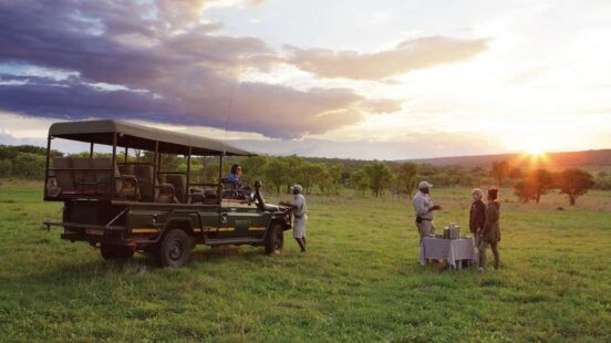 After returning from a game drive or walking safari, you can relax in your luxury canvas tent with sweeping views of the savannah, then head to the elegant dining space. Set under a verdant tree canopy, it’s the perfect place to indulge in a cocktail and gourmet cuisine.