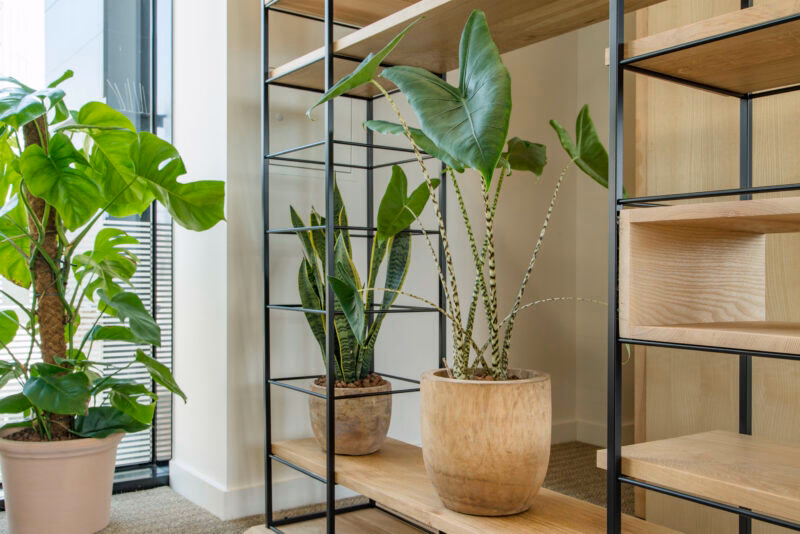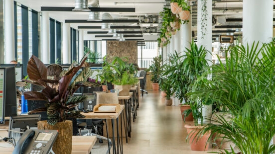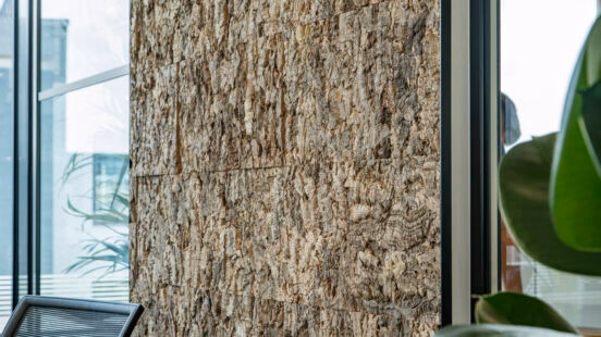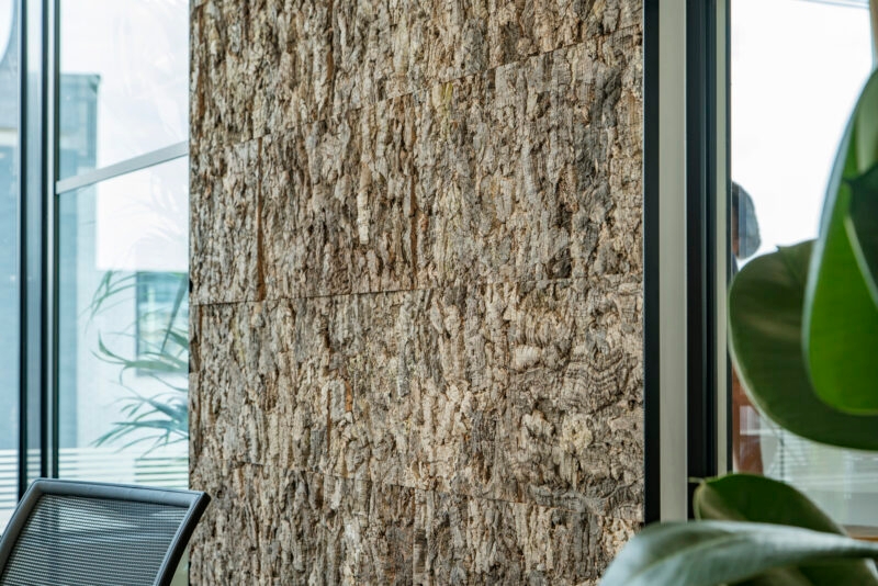 Peeled from trees in the Mediterranean, sustainable and natural cork material adorns the boards and walkways. Natural fibre carpets without traces of harmful plastic and chemical are underfoot. The blinds are made from plastic recovered from the Mediterranean Sea, and the meeting booths are made from reconstituted nettles. Lastly, the lush green plants, a defining feature of the new office space, are preened weekly by garden specialists.